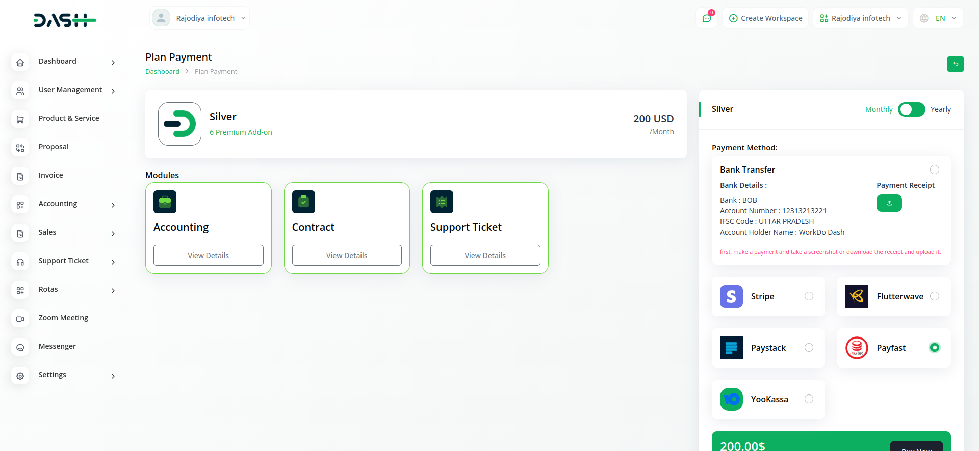 Simplify and streamline your company's plan payments with the power of PayFast integration. Enjoy a seamless and secure payment experience as your business effortlessly processes plan transactions, ensuring convenience and trust for both you and your clients. Say goodbye to complexity and hello to hassle-free plan payments with PayFast.