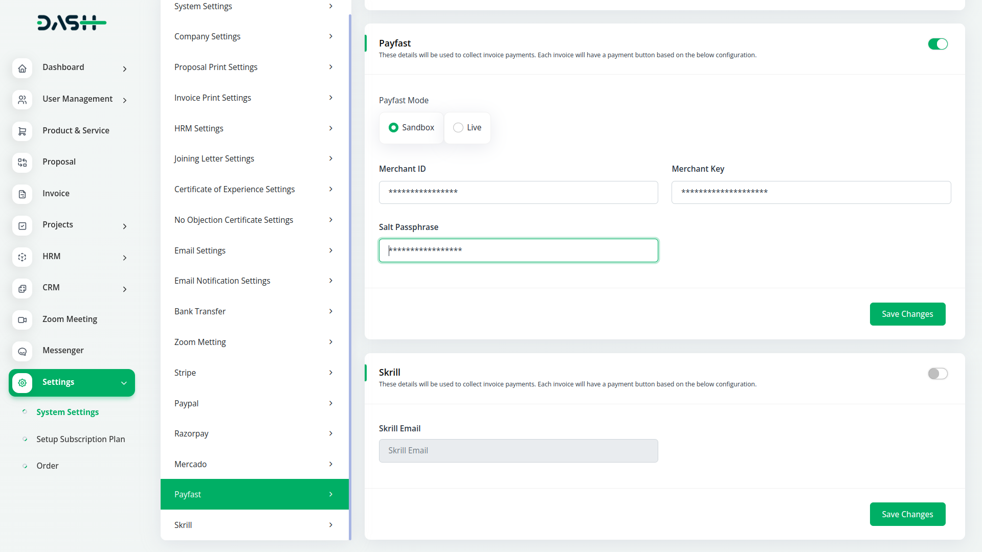 Configuring PayFast integration has never been easier. With our intuitive API Key settings page, you can seamlessly set up and manage your PayFast integration to ensure a smooth and secure payment process.